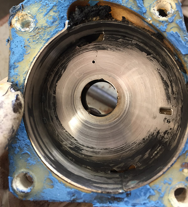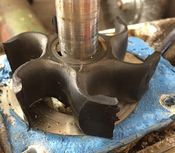 Picture #2 shows the impeller housing cup with the melted rubber from